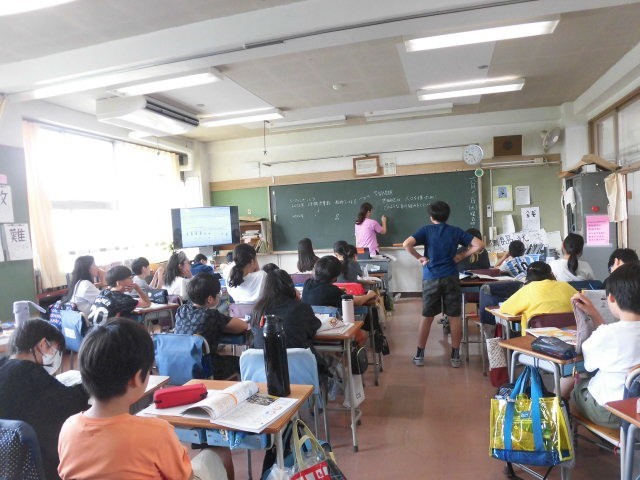もう一つのクラスは社会科の時間でした。今の社会の課題について世田谷区ではどのような取り組みをしているのか学習計画を立てていました。両クラスとも、グループで学習に取り組んでいました。