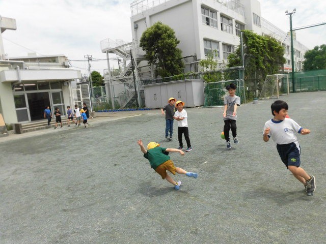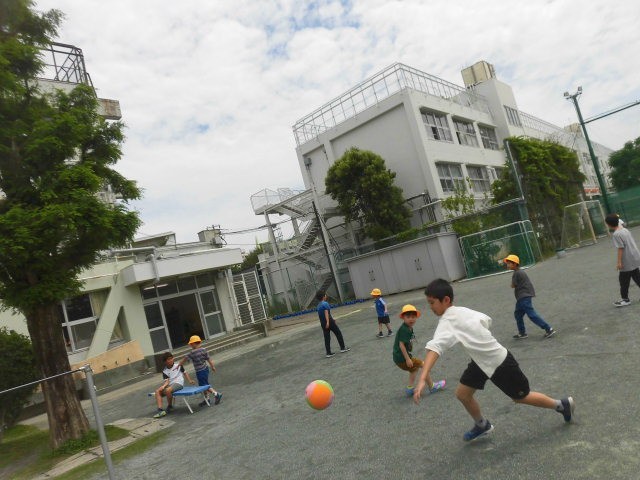 中休みの時間、数人で6年生と1年生がボールを使って遊んでいるのを見ました。