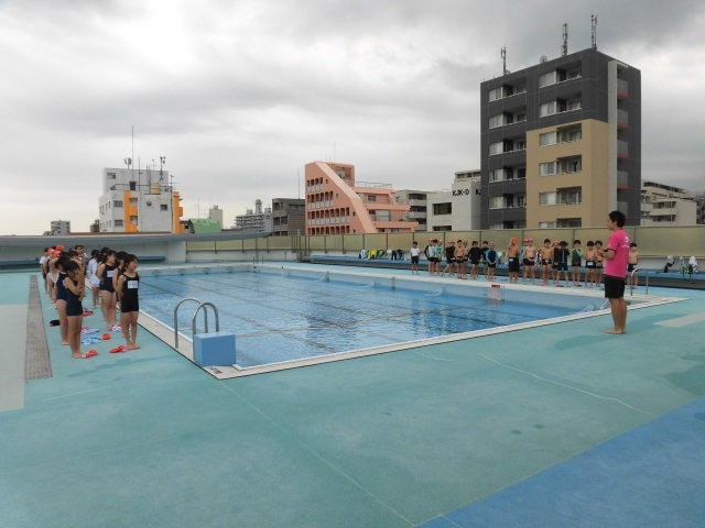 はじめにプール開きを行いました。児童代表の言葉や諸注意などがありました。水泳の授業はとても楽しいですが、命にかかわることもあります。安全に気を付けてしっかりと学習に取り組んでほしいと思っています。