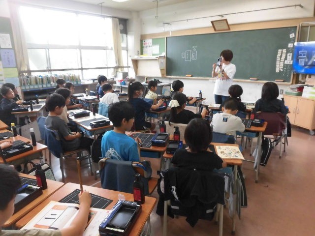 3年生の教室では習字の授業を始めるところでした。