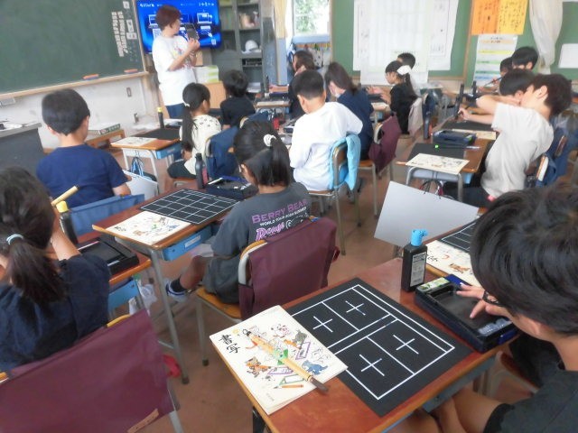 今日が初めての習字の授業です。硯や筆などの使い方の説明を受けていました。普段使うことのない道具です。筆でゆっくりとていねいに字を書くと、気持ちが落ち着きます。子どもたちにもそんな経験をしてほしいと思っています。