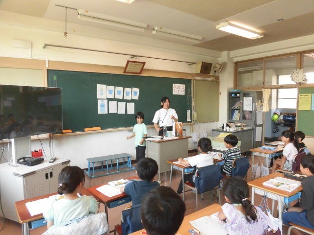 2年生の授業は算数です。水のかさの学習です。Lやdlの学習です。