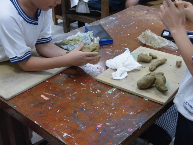 今日は土に慣れようということで、粘土での作品作りを行いました。