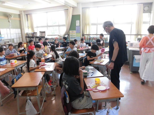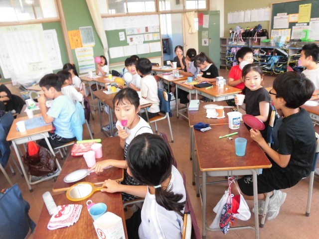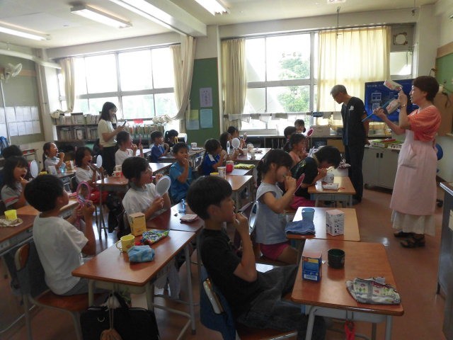 歯垢染め出しをした後、歯みがきをします。真っ赤に染まった歯を子どもたちは鏡を見てみがいています。真っ赤に染まった舌を見せ合って笑い合っている人もいます。みがき方を歯科校医の先生に見てもらい、子どもたちは満足そうです。校医の先生に見てもらい、子どもたちの歯みがきに対しての意識はとても高くなりました。校医の先生、お忙しい中、ありがとうございました。