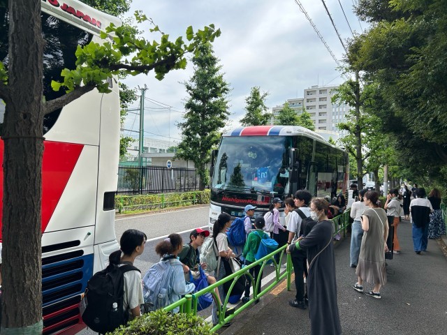 世田谷公園横からバスに乗りました。たくさんの保護者の方々が見送りに来てくださいました。ありがとうございます。