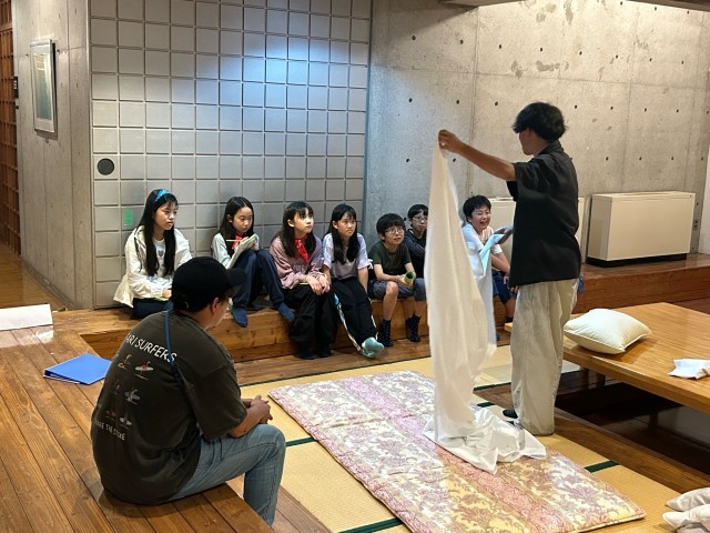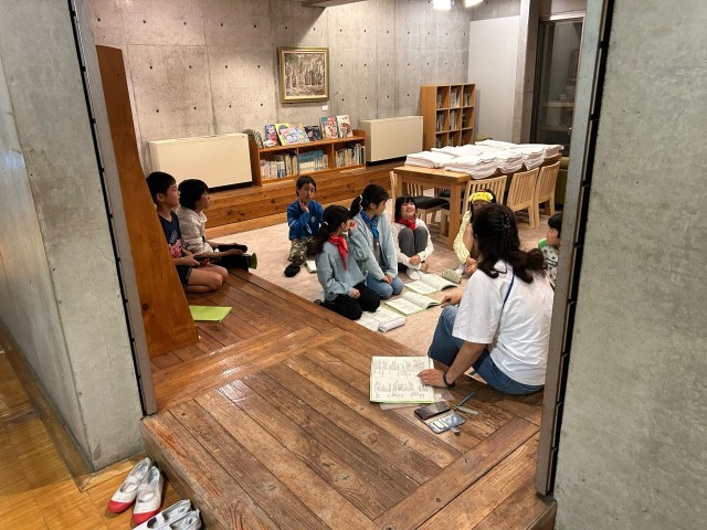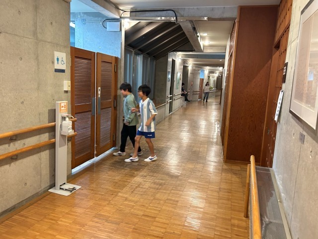 室長さんは一日を振り返る室長会議をしています。副室長は寝具の片付けなどについて説明を聞いています。それ以外の人は、歯磨きなどをすすめています。一日が終わろうとしています。