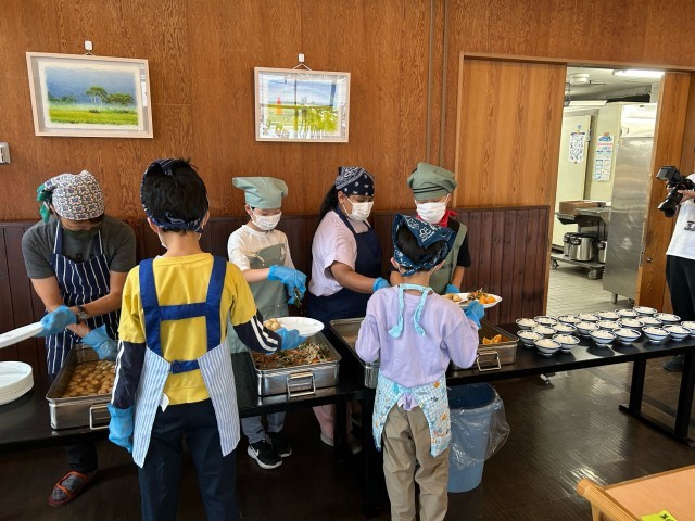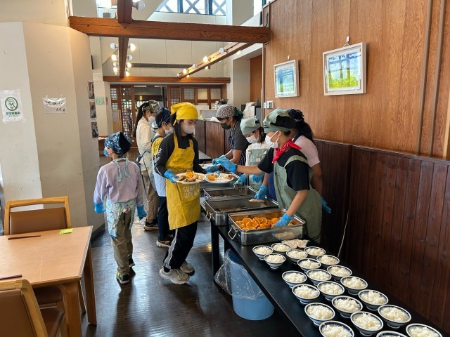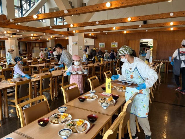 食事係が事前に集まり、朝食の準備をしてくれました。とても手際のよい食事係さんです。短時間で用意が終わりました。