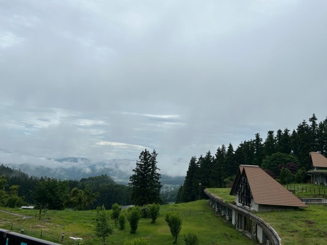 一旦雨はおさまったのですが、予報ではまだ雨が続くとのことなので、午前中なこんにゃくづくりに変更しました。川場村は厚い雲におおわれています。