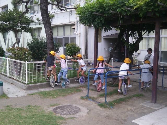 一輪車に上手に乗れる1年生が増えています。