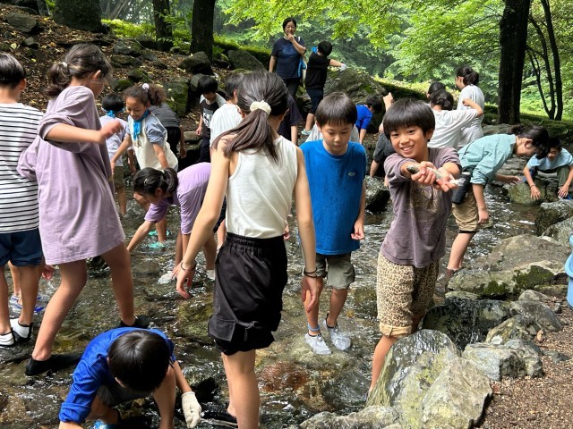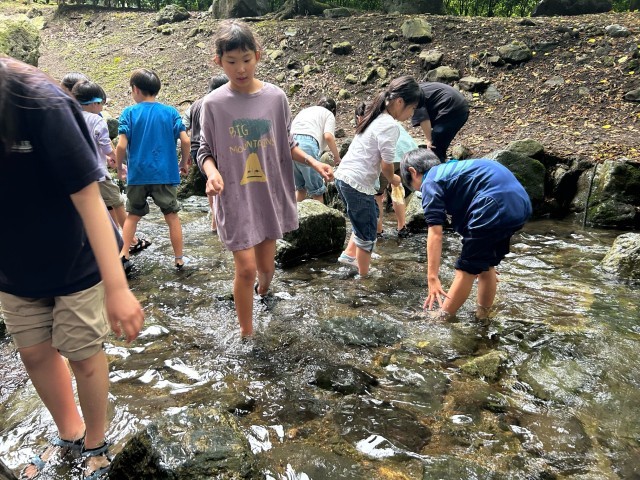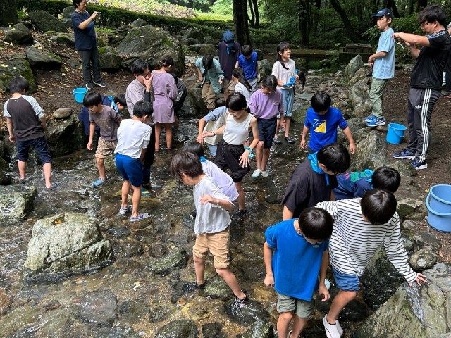 みんなとても楽しそうにマスを追いかけています。服が濡れることなんて全く気にしていません。みんな夢中です。