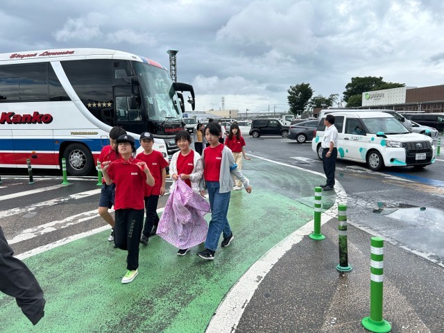 最後の休憩場所、三芳パーキングエリアを出発しました。トイレを済ませてバスに戻ろうとすると雨が降ってきました。こっちでも雨に降られています。