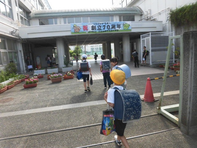 汗をかきながら子どもたちは登校します。教室に入ったら、すぐにお水を飲むように声をかけました。