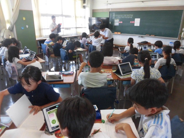 ごみについての学習です。資源としてのペットボトルはどのようにしてリサイクルされているのでしょうか。子どもたちは、資料を見ながら友達と相談をして、考えています。