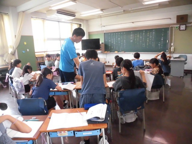 4年生の授業は国語です。接続詞の学習です。二つの文章をつなげるときには、どのような接続詞を使うのがよいのでしょう。また、この接続詞を使った場合には、続く文章はどのようにしたらよいのでしょう。子どもたちは友達の作った文章を確認しながら、文章作りをしていました。