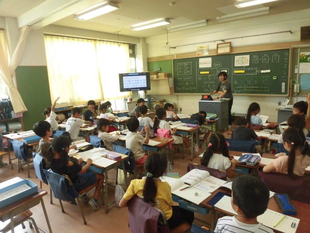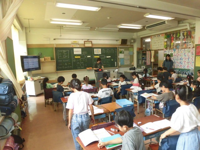 ブロックを動かしながら、ひき算の意味について学んでいます。学習の最後には、計算問題をみんなで解いていました。ブロックを操作しながら、学んでいる1年生です。