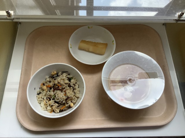 牛乳・豆入りひじきご飯・いかの照り焼き・かみなり汁