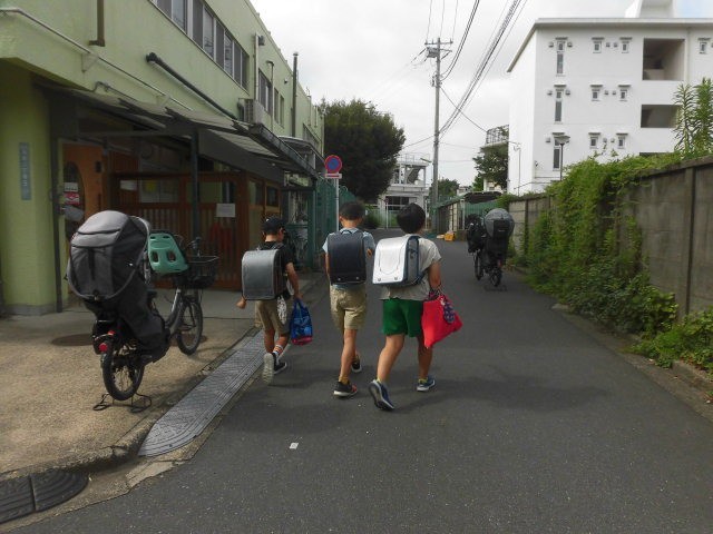 今日プールの授業がある人は、嬉しそうにプールバックをもっています。子どもたちもプールを楽しみにしています。