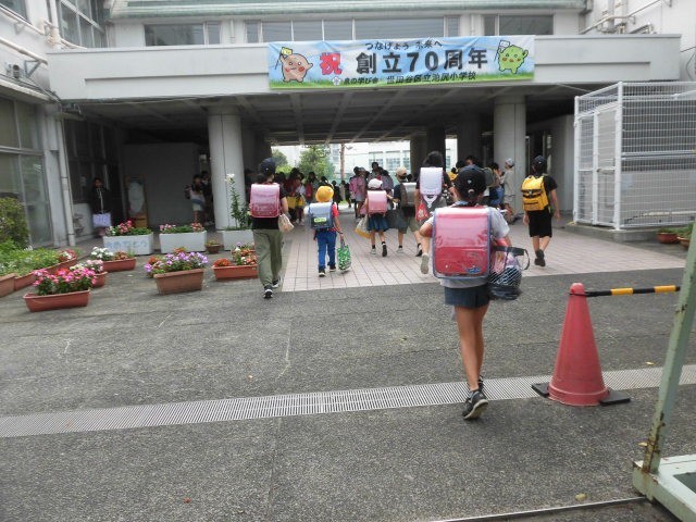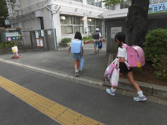 子どもたちが登校してきました。今日は熱中症警戒アラートが出るようで暑さが心配されます。子どもたちは汗をかきながら登校しています。