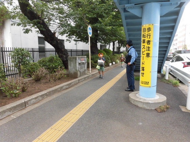 今日もおまわりさんが子どもたちの登校を見守ってくれていました。