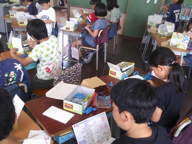 自分の車が完成した人は友達の制作の手伝いをしていました。