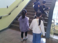 1年生が2年生とグループを組んで学校たんけんを行いました。2年生が1年生に優しく...