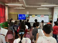 2年生は国語の授業です。登場人物の見たものを文章の中から探しました。文章をよく読...