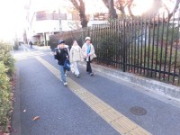 子どもたちが登校してきました。今日はとても寒く感じます。日陰を歩いて登校する人た...
