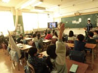 2年生の授業は道徳です。礼儀についての学習です。子どもたちは教材に出てくる男の子...