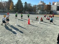 1年生は体育です。冷たい風が吹く中でも元気に楽しく、ボール蹴りゲームを行いました...