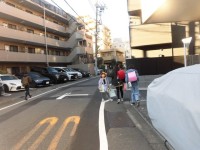 子どもたちが登校してきました。今日はとても寒く、背中を丸めて登校する人がたくさん...