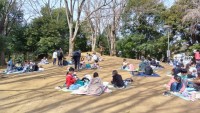 子どもたちが登校してきました。早く登校した人の中には日向ぼっこをしている人もいま...