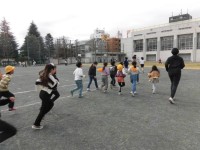 4年生の授業は体育です。キャッチバレーをしています。ゲームを始める前、子どもたち...