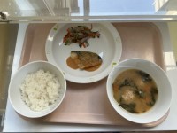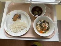牛乳・ご飯・魚のピリ辛ソースかけ・大根のゆかりかけ・肉団子入り味噌汁 今日は、ご...