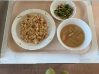 牛乳・わかめとじゃこのご飯・春巻き・ラーパーツアイ・果物(柿) 今日は、社会科見...