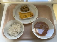 牛乳・麦ご飯・鯖の一味焼き・かきたま汁・果物(みかん) 今日のご飯は有機米です。...