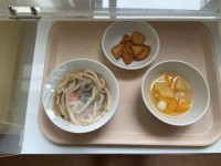 牛乳・ちゃんこうどん・みそポテト・フルーツ白玉 今日は、埼玉県の郷土料理味噌ポテ...