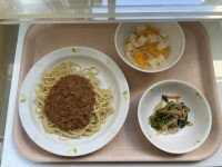 牛乳・大豆入りジャージャー麺・ナムル・豆乳杏仁豆腐 今日は、子どもたちに大人気の...