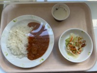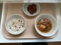 牛乳・チリビーンズライス・茹で野菜の玉ねぎドレッシング・キャロットゼリー 今日は...