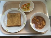 牛乳・セサミトースト・ビーンズシチュー・コーンサラダ 今日は、子供達にも人気のセ...