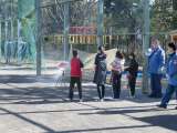 1年生の図工で風車を作りました。作り終わった子どもたちは、さっそく校庭に出て風車...