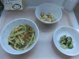 <献立> カレーうどん、牛乳、野菜のゆかりがけ、シナモンポテト <主な食材の産地...