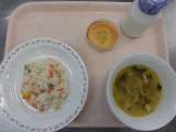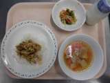 〈献立〉 ○三色ピラフ ○牛乳 ○白菜スープ ○りんごケーキ 〈主な食材の産地...