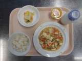 〈献立〉 ○麦ごはん ○家常豆腐 ○辣白菜 ○みかんゼリー 〈主な食材の産地〉...