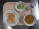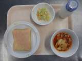〈献立〉 ○タラモトースト ○牛乳 ○キャベツサラダ ○ボルシチ 〈主な食材の...