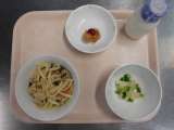 〈献立〉 ○あしたばパン ○牛乳 ○魚のごまフライ ○ピクルス ○チンゲン菜のス...