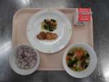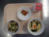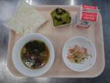 〈献立〉 ○ソフト麺(けんちん汁) ○牛乳 ○こんにゃくサラダ ○甘納豆入り抹茶...
