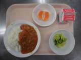 〈献立〉 ○麦ごはん ○牛乳 ○四川豆腐 ○辣白菜 ○くだもの 〈主な食材の産...