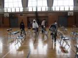 今日は、新一年生の保護者会があります。体育館で行います。 昼休み、6年生がその椅...