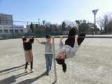 3年生と鉄棒の練習をしました。一番高い鉄棒ですが、コツを教えたら逆上がりができる...
