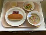 牛乳・コッペパン(いちごジャム添え)・カレーシチュー・コーンフレンチサラダ・りん...